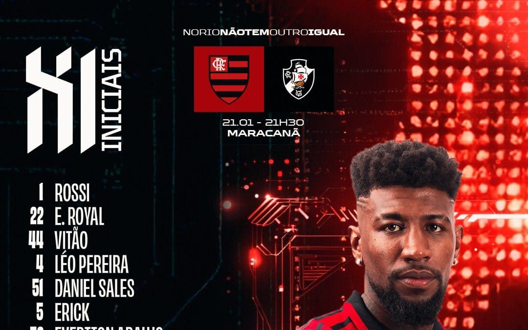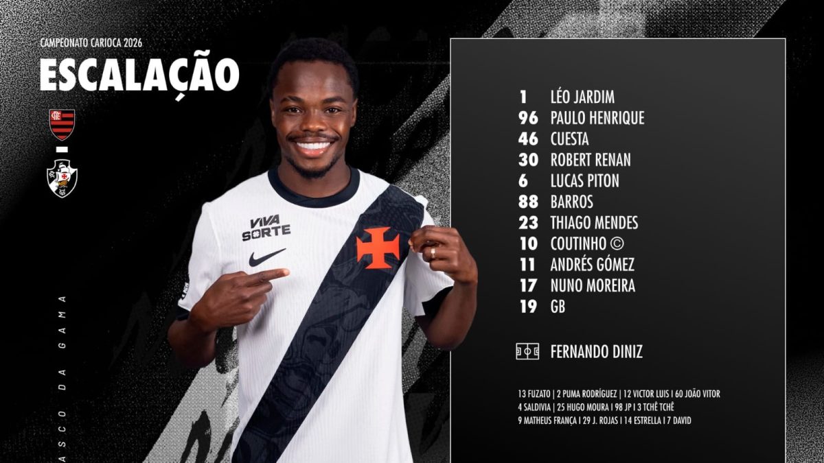 Sem Rayan, Vasco divulga escalação para jogo contra o Flamengo, pelo Carioca